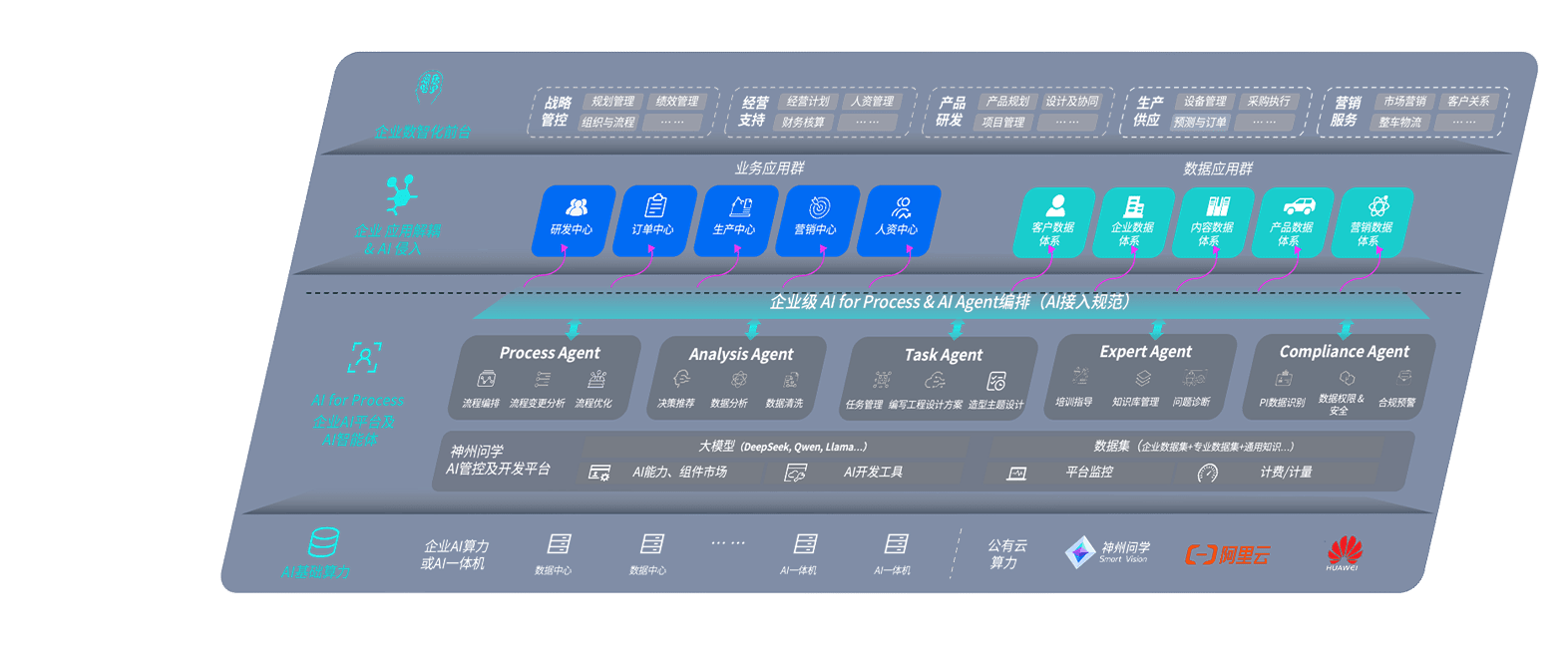 端到端的一站式AI工作空间深度融合了从企业战略规划到日常经营的全流程业务板块,,,,定向解决车企内部领域多、、、部门多、、、链条长、、、、场景碎片化等难题,,支持车企快速构建以AI为核心的生产力写作体系,,实现任务执行与AI能力的无缝集成与交互